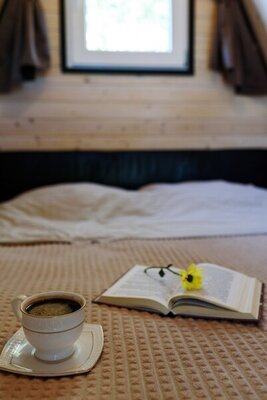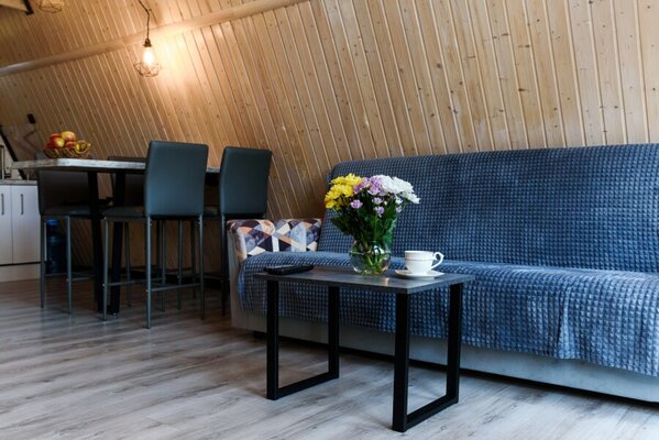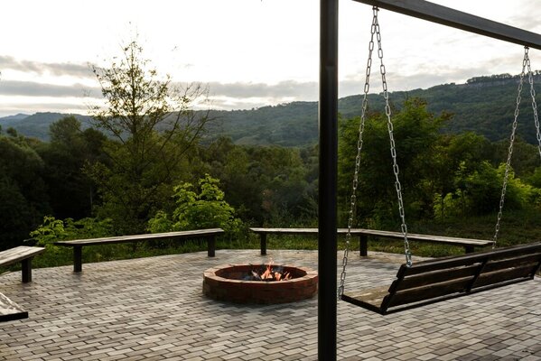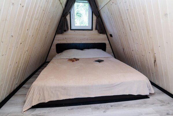 Отдохните в гостевом доме «Feshin Forest» в станице Даховской, Адыгея. Уютный домик, идеально подходящий для компании до 4 человек, предлагает потрясающий вид на реку Белую и горы Лаго-Наки. На втором этаже расположена двуспальная кровать, а внизу — комфортный раскладной диван.