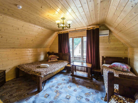 На территории гостиницы есть все необходимое для отличного отдыха: Комфортабельные номера – 2-х местные и 4-х местные, со всеми удобствами (душ, туалет, ТВ (плазма),холодильник) в настоящем деревянном срубе. Большая терраса с видом на горный пейзаж и заснеженные вершины. Беседки, мангалы, автостоянка и сауна. Организованно питание: Комплексное (домашняя кухня) – по доступным ценам. Кафе (работает до позднего вечера), где можно не только перекусить, но и организовать торжественное мероприятие. В общем все для качественного отдыха в Адыгее. Размещение в нашей гостинице подарит уют, комфорт и душевное равновесие.