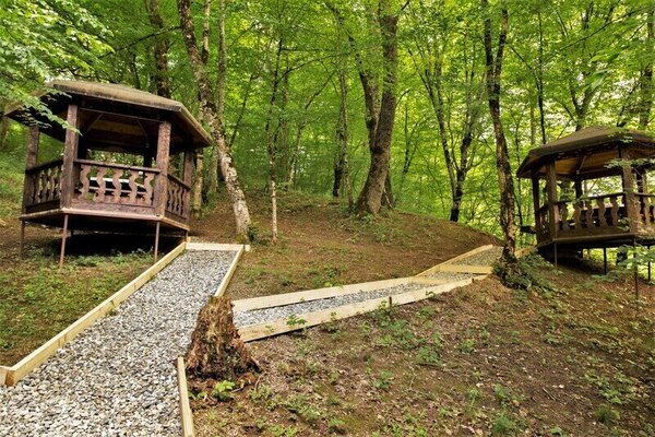 На территории гостевого дом Грин Хаус под сенью леса поставлены беседки с мангалами, где вы можете приготовить блюда на мангале или просто попить травяной чай, послушать звуки леса и подышать свежим горным воздухом. Все беседки имеют электрическое освещение.