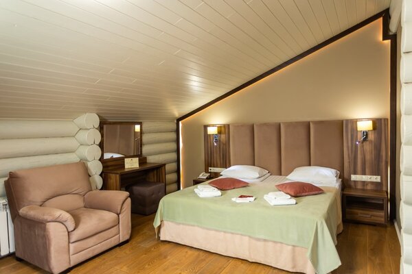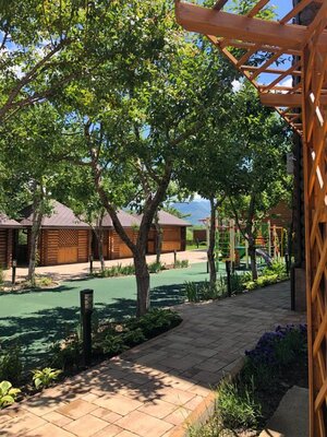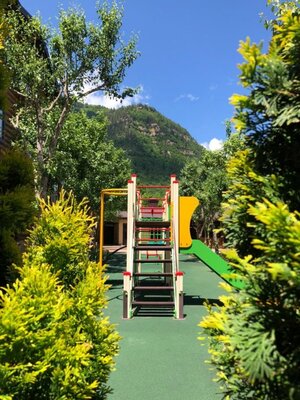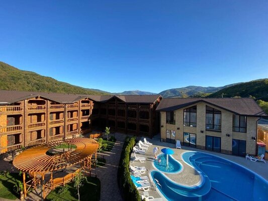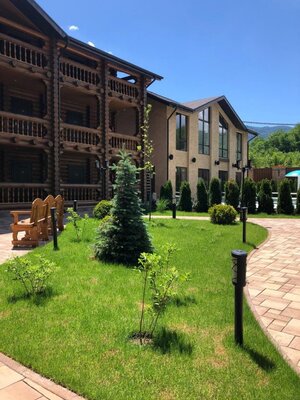 На территории отеля имеется вся необходимая инфраструктура как для активного отдыха, так и для релаксации. Здесь есть бар, фирменный ресторан, зона барбекю и удобные беседки. На территории отеля есть небольшой сад и оборудованная детская площадка.