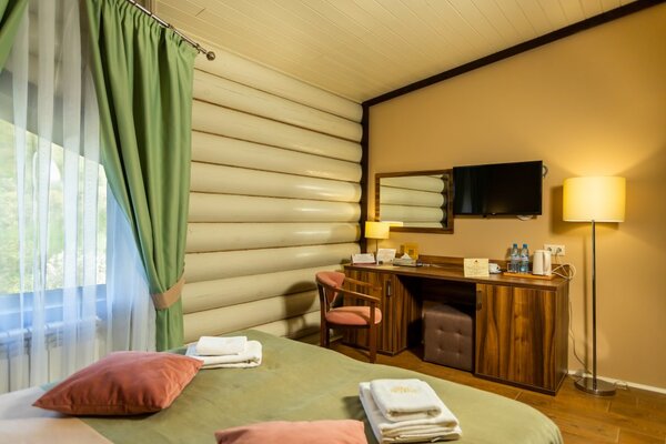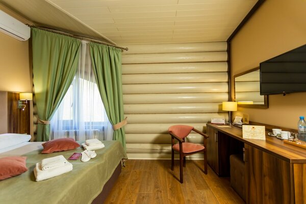 Спа-центр отеля включает в себя финскую сауну, открытый бассейн с подогревом и массажный кабинет. В отеле есть детская игровая комната с большой игровой площадкой для активных игр, а также настольного футбола и аэрохоккея. В игровой комнате постоянно работает профессиональный аниматор. При необходимости для гостей может быть организован трансфер к достопримечательностям курорта и в аэропорт. Еда и напитки доставляются в номер. В отеле доступен бесплатный Wi-Fi. Отель предлагает континентальный завтрак (включен в стоимость номера) или завтрак по меню.