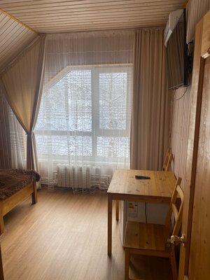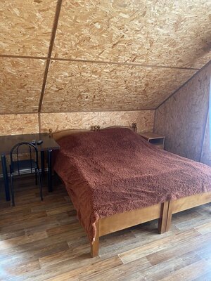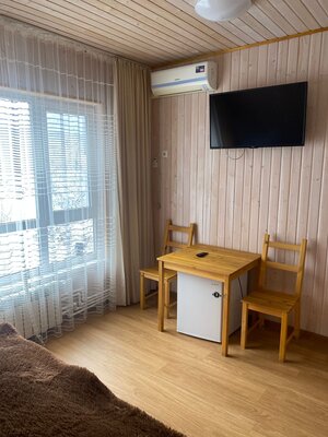 В номерах, рассчитанных на 2-4 человек, есть все удобства: ванная комната, кондиционер, холодильник и телевизор. После прогулок на свежем воздухе расслабьтесь в русской бане с дровяной печью, бодрящей купелью и дубовыми вениками.