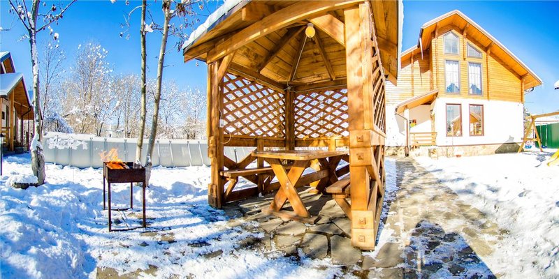 В саду установлены беседки с необходимой мебелью, оборудованы зоны с мангалами для приготовления барбекю.