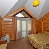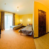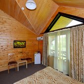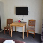 Номера в отеле «Парк Хаджох» оформлены в теплых тонах и оснащены телевизором с плоским экраном, балконом и собственной ванной комнатой.
