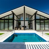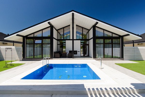 Открытый бассейн всегда дает возможность общения с природой, которая в данном случае не спрятана от водоема стенами и крышей, а также участвует в процессе отдыха и расслабления.