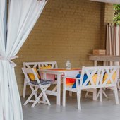 Здесь вы можете насладится спокойствием и непринужденностью, база располагает террасами и коттеджами со всем необходимым оснащением, есть лаунж-зоны и детская площадка.