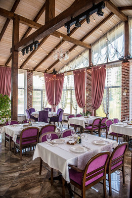 Для проведения праздников и корпоративов доступно два зала: каминный и летний с панорамными окнами, оформленными в разном стиле. Вместимость ресторана по 50 человек в каждом зале.