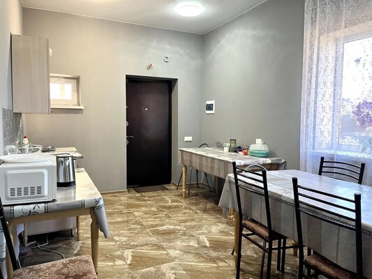 С микроволновкой, плитой, чайником и посудой — готовьте или разогревайте еду в любое время.