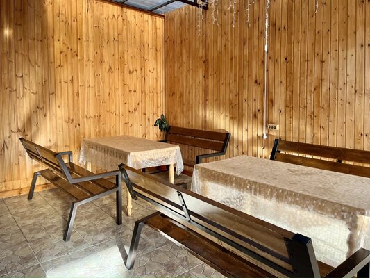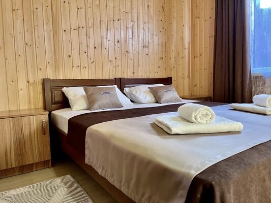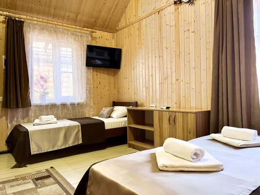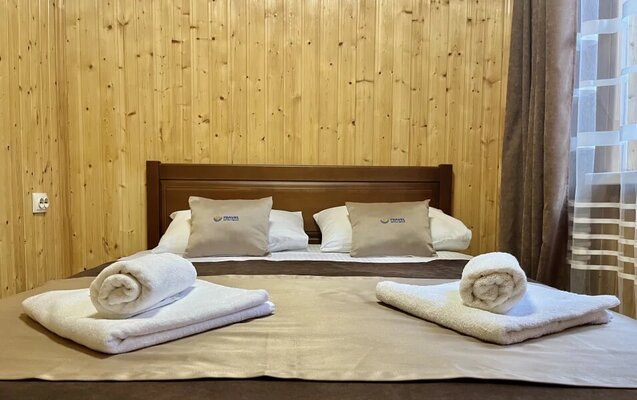 Гостевой дом «У пруда» приглашает отдохнуть на тихой окраине поселка Каменномостский. К вашим услугам уютные домики, рассчитанные на 4-6 человек, оборудованные удобной мебелью, белоснежным бельем и всем необходимым для ванной комнаты. Настоящая русская баня на дровах подарит здоровье и заряд бодрости, а расслабляющий чан под открытым небом — незабываемые впечатления. Продуктовый магазин находится в непосредственной близости.