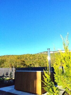 Купели изготовлены из самого лучшего материала - композита, они имеют квадратную форму и рассчитаны на 6 человек. Каждая купель расположена возле своего барнхауса, поэтому вашей компании не придётся завидовать соседям и ожидать свободных мест!