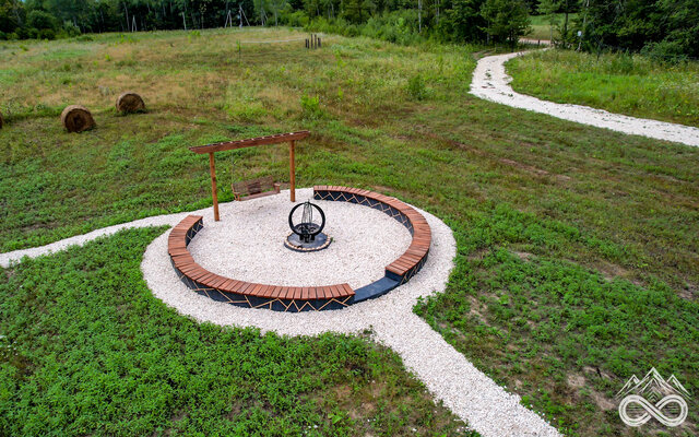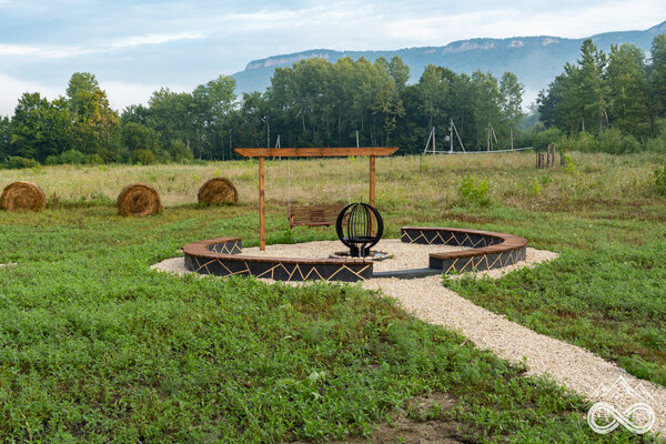 Здесь можно уютно провести время в компании близких людей, наслаждаясь теплом огня и красотой звездного неба. Зона для разведения костра оформлена со вкусом, а рядом расположена качель, что создает особую атмосферу и располагает к общению.