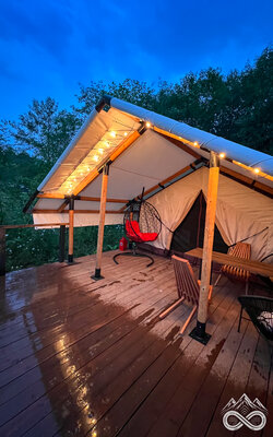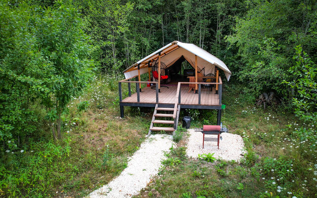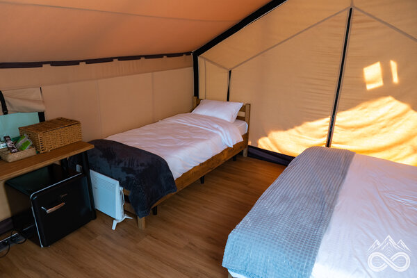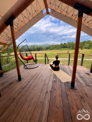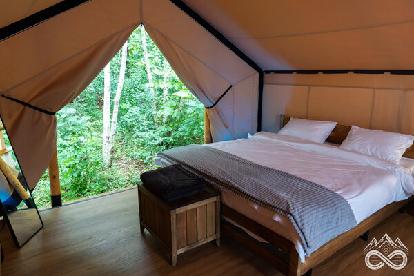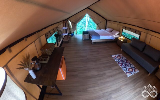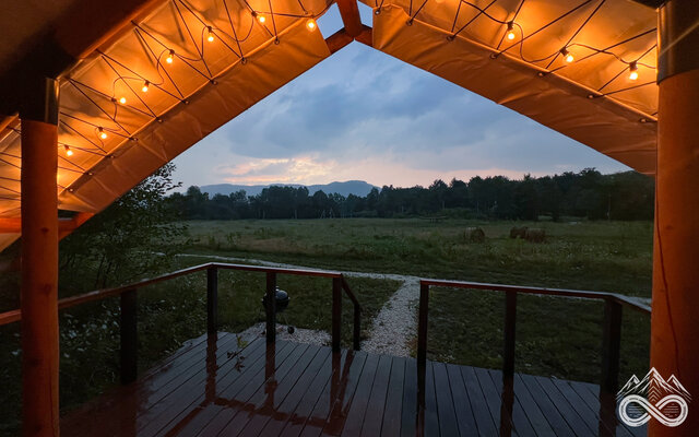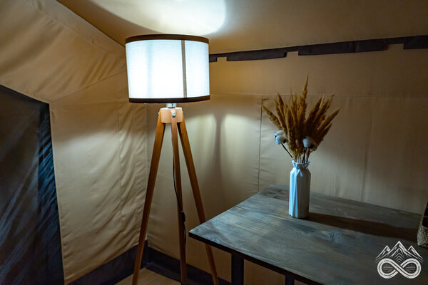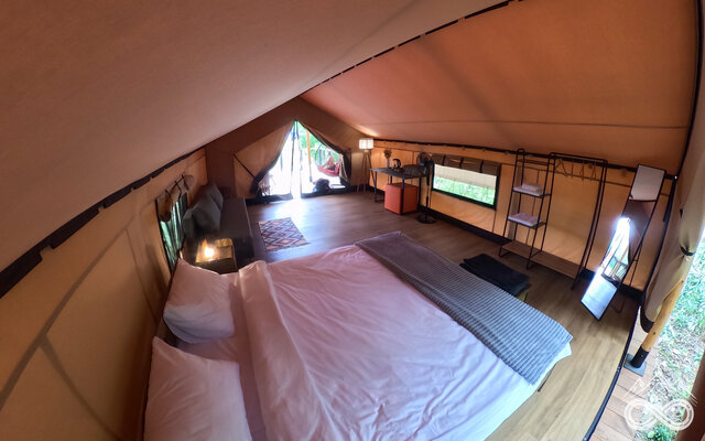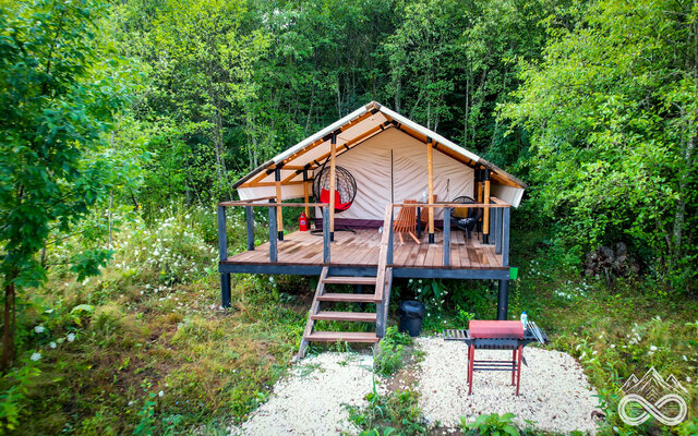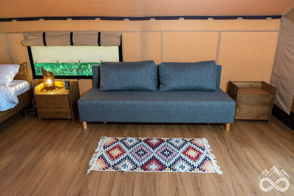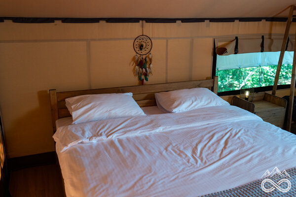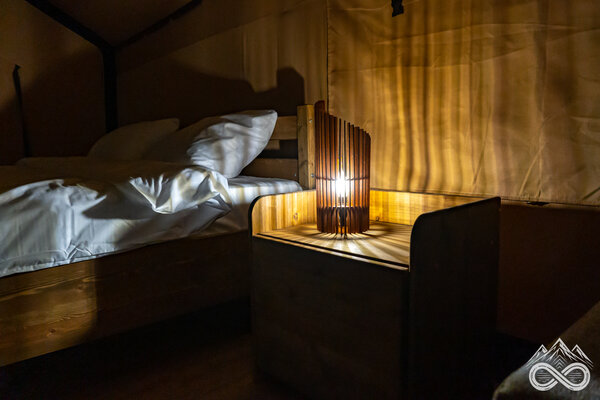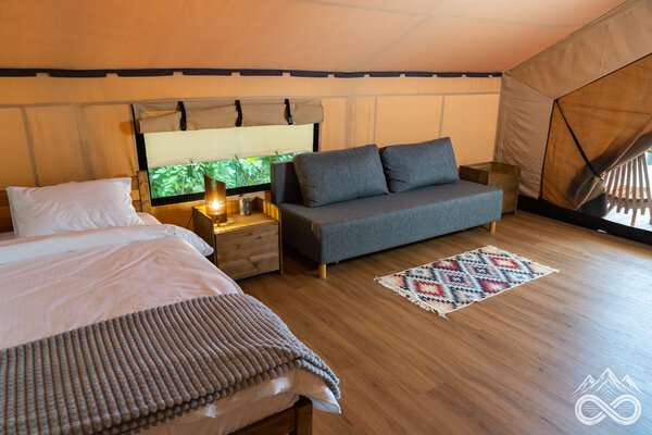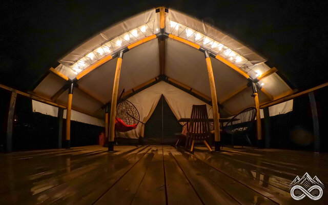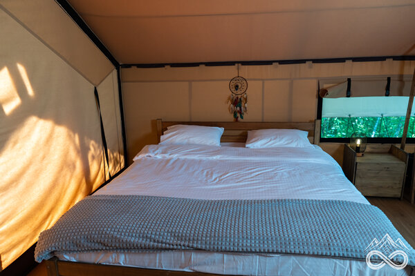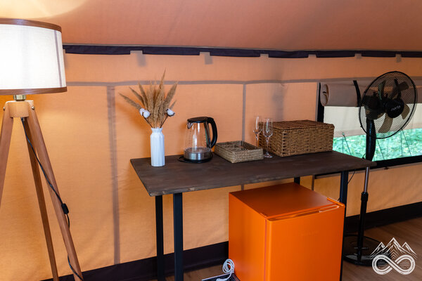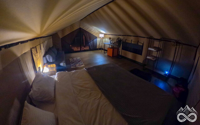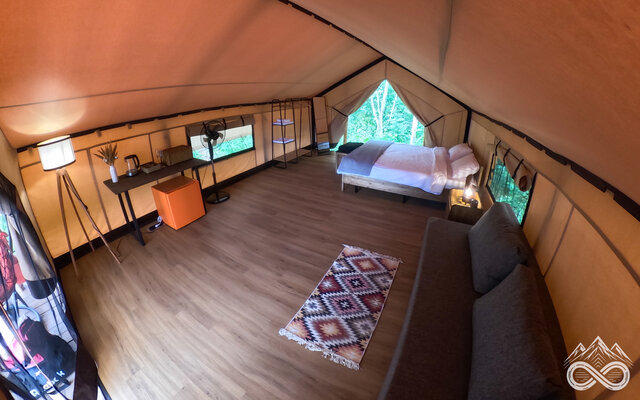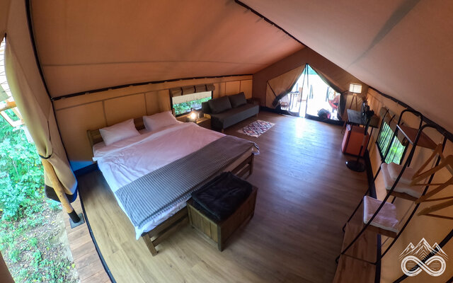 Каждый сафари-тент — это уютный дом с собственной террасой и мангальной зоной, обеспечивающий уединение и потрясающие виды. В вашем распоряжении общая кухня-гостиная с дровяной печью для приятного времяпрепровождения, а также большая костровая зона для вечерних посиделок.