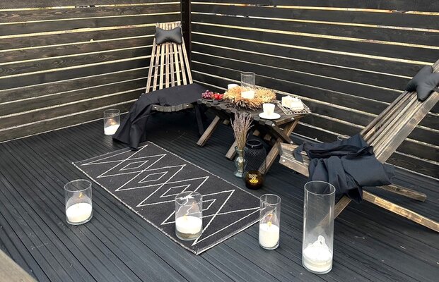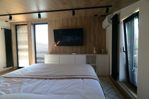 Хотя на территории нет ресторана, в каждом доме оборудована кухня, позволяющая готовить самостоятельно. Закажите доставку горячего завтрака прямо в номер или приготовьте шашлыки на мангале — зона барбекю есть у каждого дома.