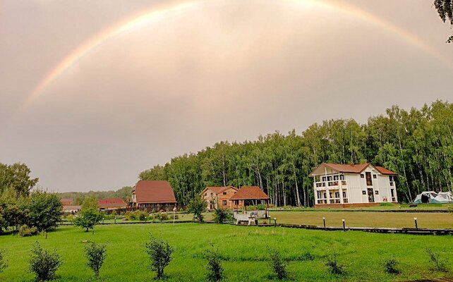 Отель расположен на обширной территории, в окружении березового леса. До берега Катуни всего 100 метров, откуда открываются виды на Теректинский (север) и Катунский (юг и запад) хребты.