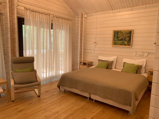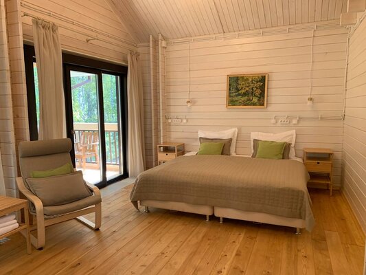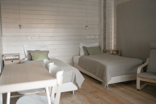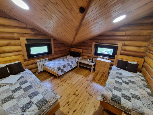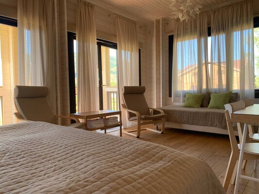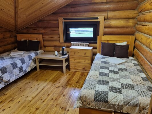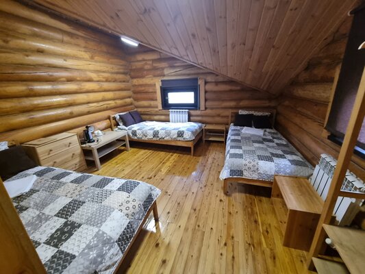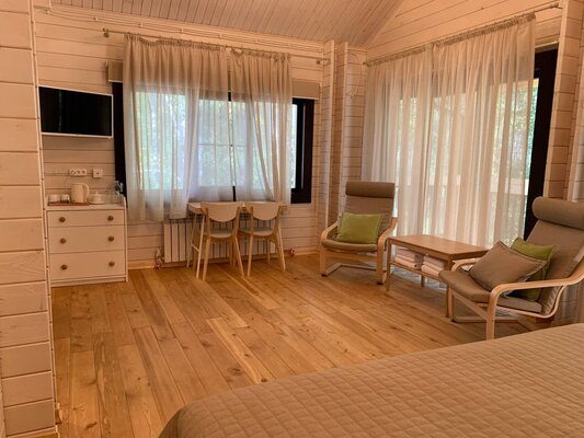 Для проживания предлагаются корпуса из натуральных материалов: два благоустроенных коттеджа с комфортными номерами и деревянный дом с тремя эконом-номерами. Все номера оснащены необходимой мебелью, чайником, телевизором и Wi-Fi. В эконом-номерах удобства общие, на этаже.