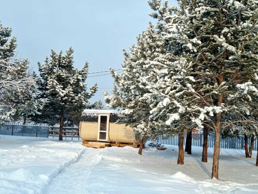 На территории отеля имеется зона для костров и баня-бочка из алтайского кедра.