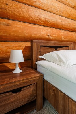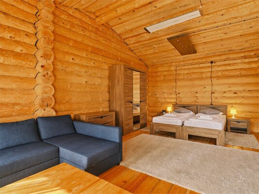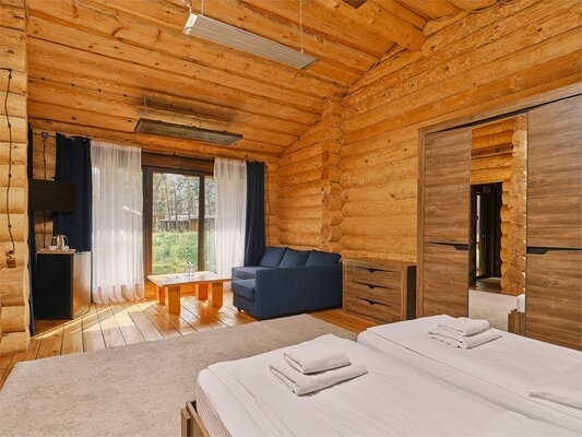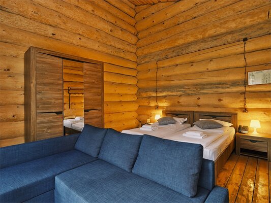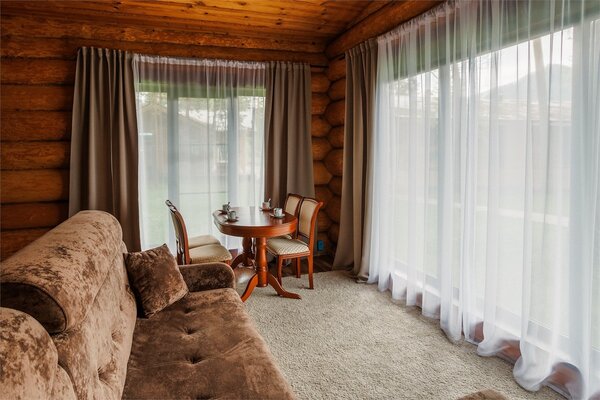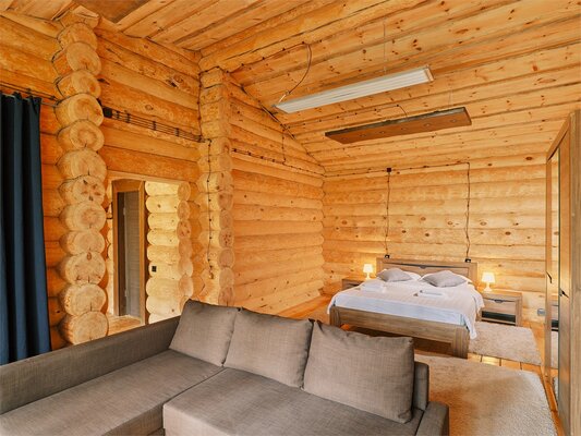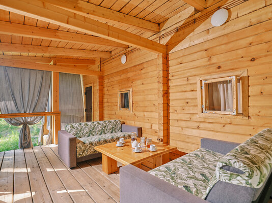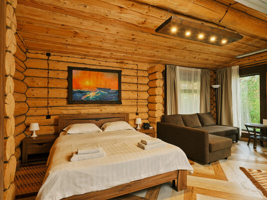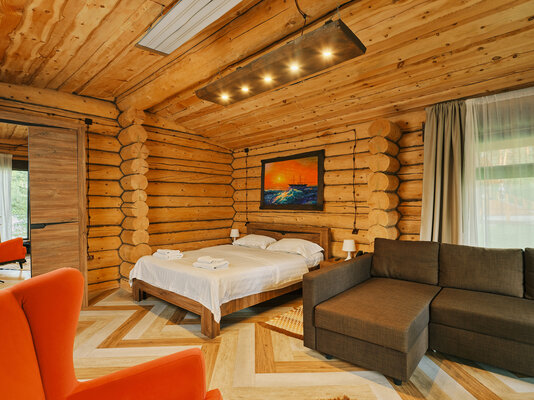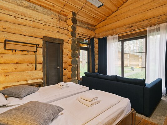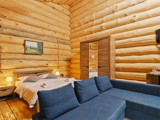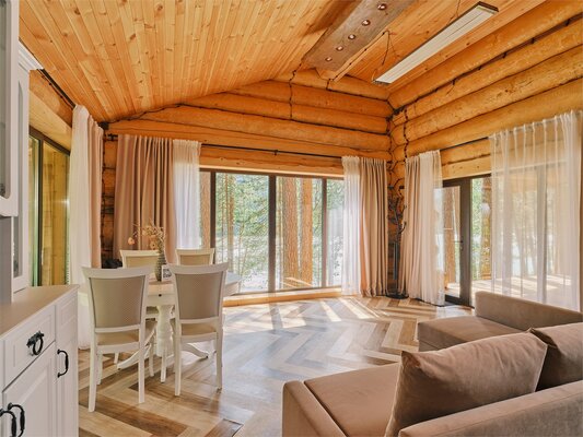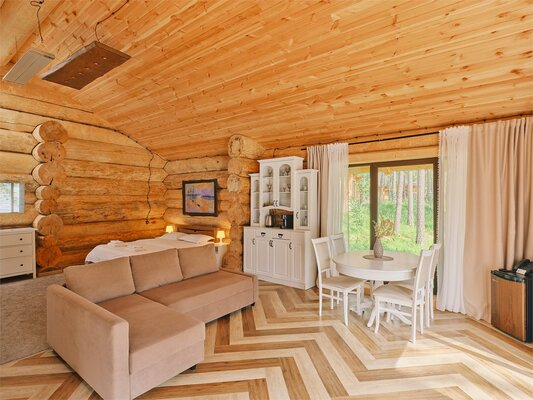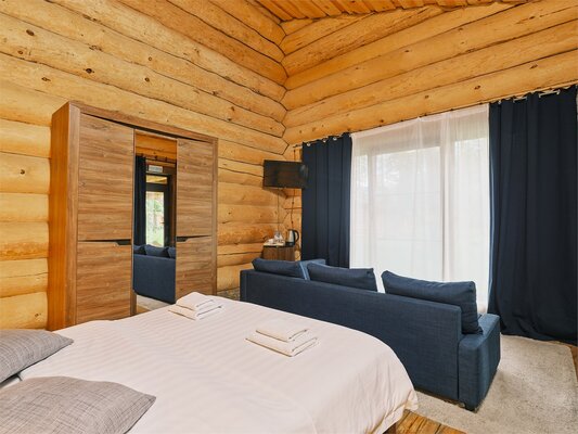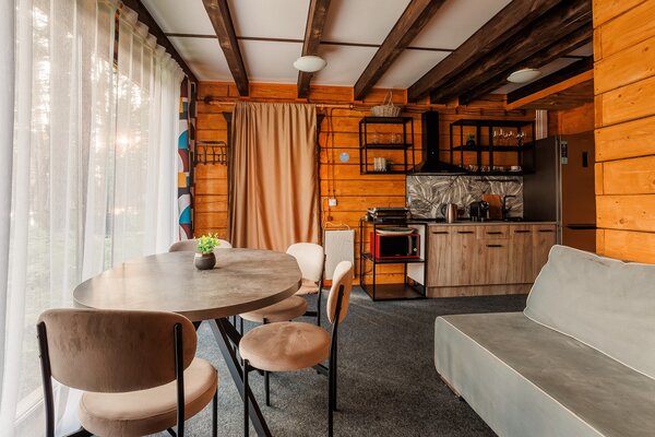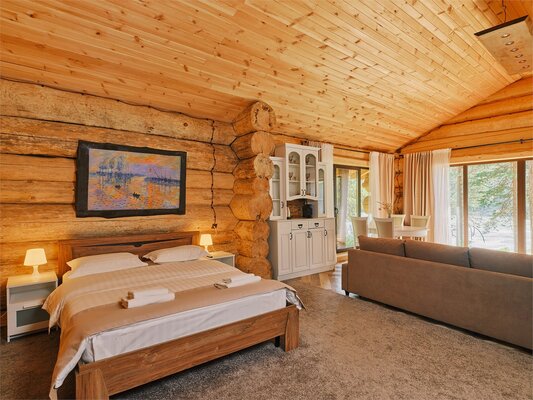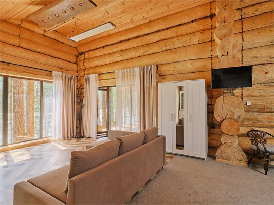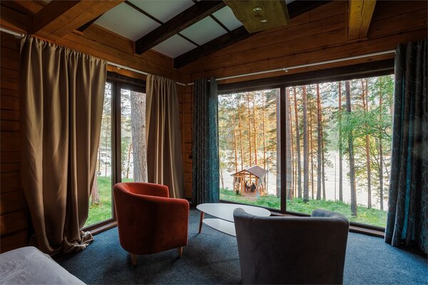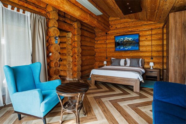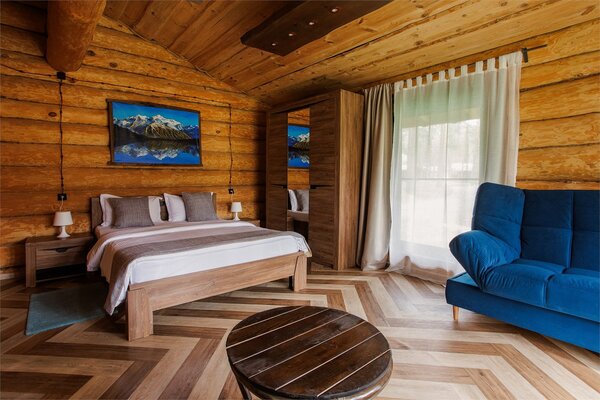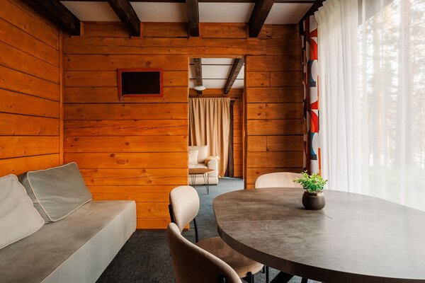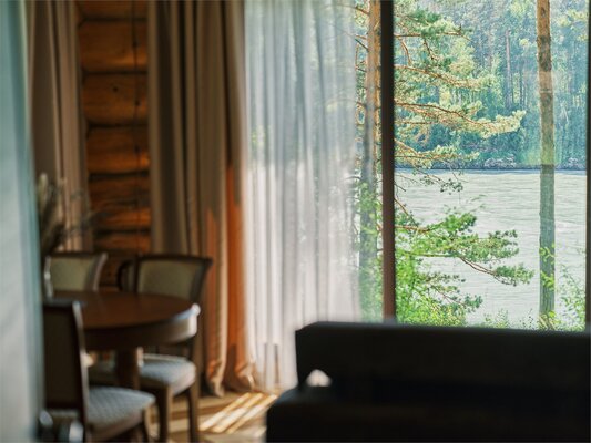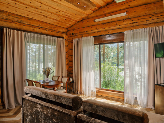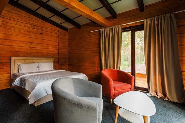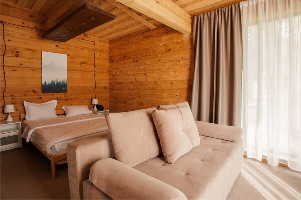 Гости могут насладиться комфортом шале из кедра в рустикальном стиле с современными акцентами, окруженные живописными пейзажами. Просторные номера, рассчитанные на размещение четырех и более человек, создают атмосферу домашнего тепла и уюта. Внимание к деталям делает пребывание в отеле приятным и вдохновляющим.