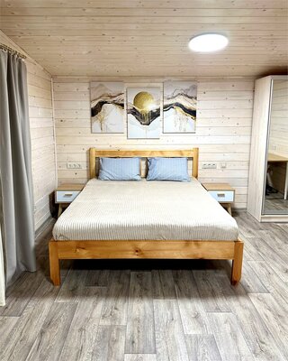 Окунитесь в атмосферу нового двухэтажного коттеджа в стиле барнхаус. Здесь вас ждут все удобства для незабываемого отдыха: полностью оборудованная кухня, комфортабельная ванная комната, мебель, телевизор и Wi-Fi.