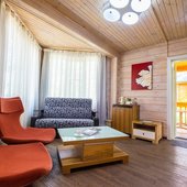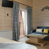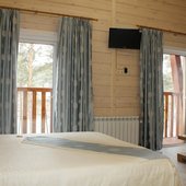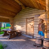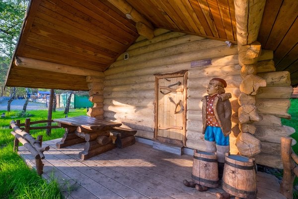 Территория отеля отгорожена от посторонних глаз и охраняется, что создает атмосферу уюта и спокойствия. На территории расположились два отдельно стоящих двухэтажных шале, двухэтажный отель, летние домики в стиле русского фольклора, 4-х местные домики эконом класса, русская баня, а также спортивная и детская площадки, летние беседки, две автостоянки. Все постройки выполнены из экологически чистого материала.