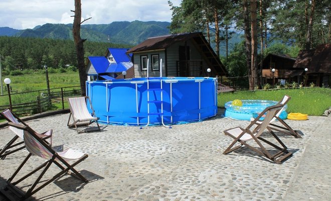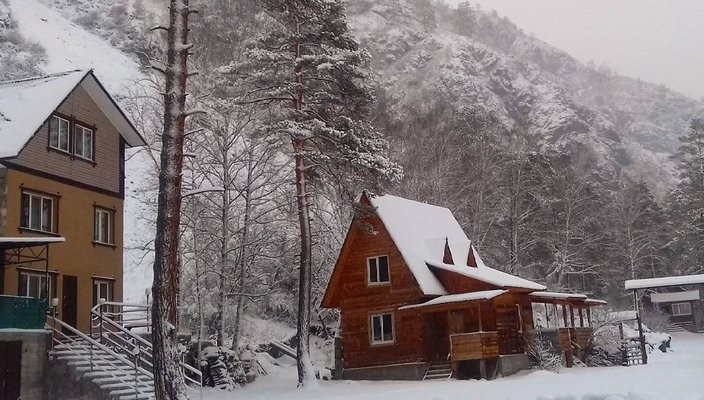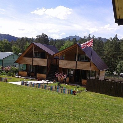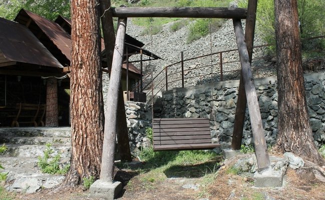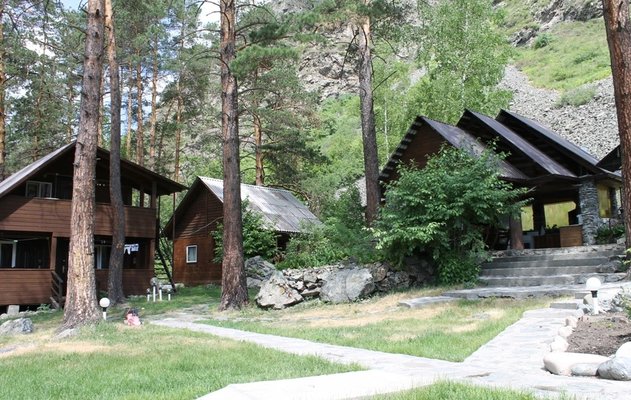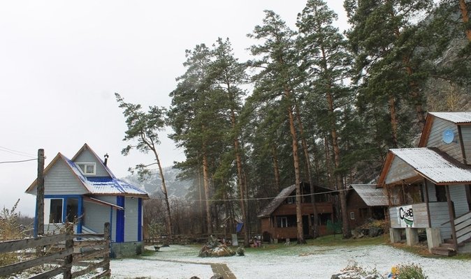 Усадьба находится в с. Чемал – недалеко от соснового бора, где можно насладиться свежим воздухом, пением птиц и прогуляться до р. Чемал. Поблизости расположена знаменитая пирамида «Золотого сечения». А до самых популярных мест в с. Чемал: Катунская ГЭС и о. Патмос всего 1,5 км.