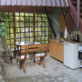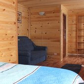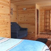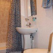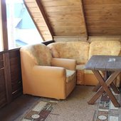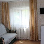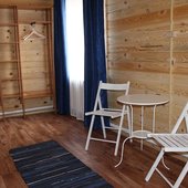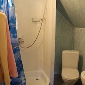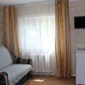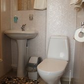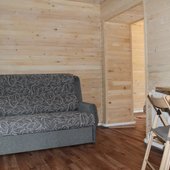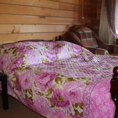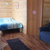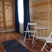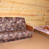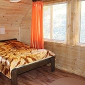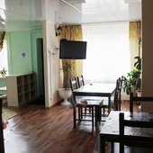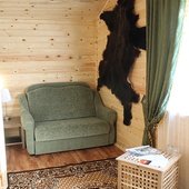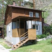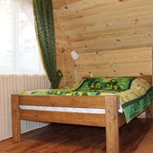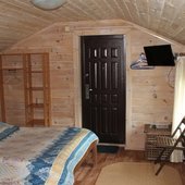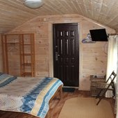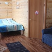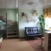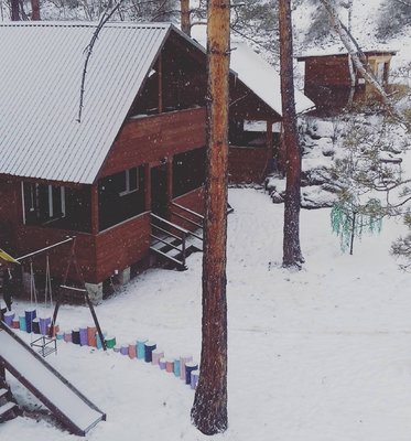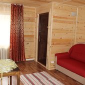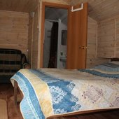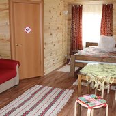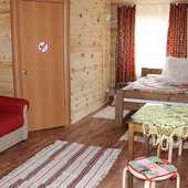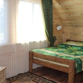 Трехэтажный коттедж на 3 зимних номера и 2 летних номера. Все номера индивидуальны и выполнены в своем неповторимом стиле. Для удобства отдыхающих на первом этаже есть кухня, где можно приготовить еду, и уютная столовая, где можно покушать и посмотреть ТВ.