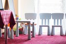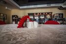 На первом этаже главного корпуса расположился ресторан, оформленный в духе классической элегантности. Красно-белая палитра, приглушенный свет и тихая фоновая музыка создают атмосферу, где каждый уголок дышит романтикой и утонченностью.