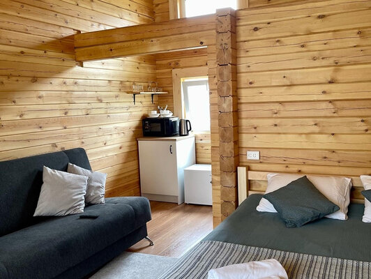 Уют и комфорт в окружении горных красот. Отдельно стоящие дома из кедра, построенные из экологически чистого кедра, наполнят вас теплом и ароматом сибирской тайги. В отеле большое разнообразие номеров. На выбор предлагаются два номера люкс и четыре комфортных номера, каждый из которых оснащен всем необходимым для комфортного отдыха: двухспальными кроватями, мягкой мебелью, кухней и отдельным санузлом с душем.