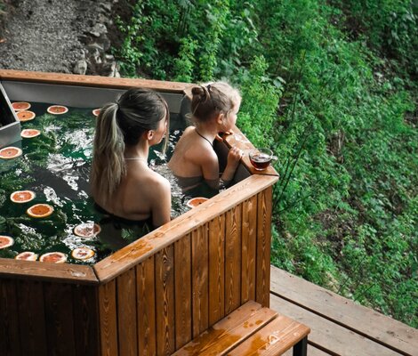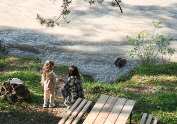 Для приятного досуга на свежем воздухе предусмотрены пять оборудованных мангальных площадок. Насладитесь истинным релаксом в настоящей деревянной бане на дровах прямо у реки или окунитесь в купель с захватывающим панорамным видом. Собственный оборудованный пляж с комфортным спуском приглашает к расслаблению, солнечным ваннам и освежающим купаниям в жаркий день.