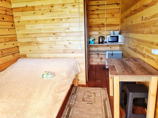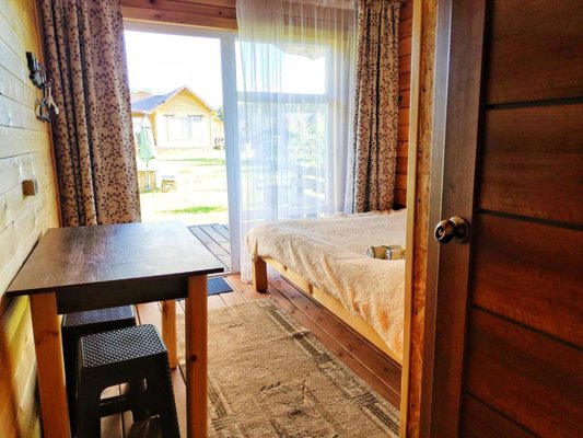 На территории эко-отеля есть уютные деревянные домики, оснащенные индивидуальным отоплением. Каждый номер имеет отдельную ванную комнату с душем и феном, а также кухонную зону с микроволновой печью, посудой и электрочайником. В некоторых номерах также есть холодильник и плита.