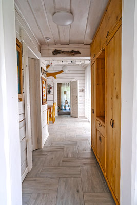 Чага Дом находится на полуострове, поэтому сначала вам предлагают совершить небольшую прогулку по живописному подвесному мосту через Бию. Багаж с комфортом доставят до территории отеля.