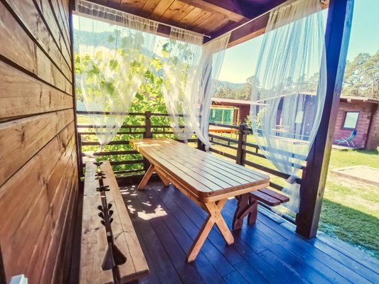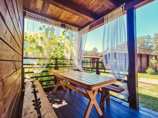 Эко-отель «Медведь и Ягодка» расположен на окраине хвойного массива недалеко от реки Катунь в Горном Алтае. И хоть территориально отель относится к небольшому алтайскому селу Чепош. К услугам гостей алтайская баня, рыбалка, конные прогулки, мангальная зона.
