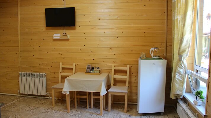 Просторные и уютные номера в деревянном корпусе с террасой создадут атмосферу тепла и уюта. В каждом номере есть все необходимое для комфортного отдыха: