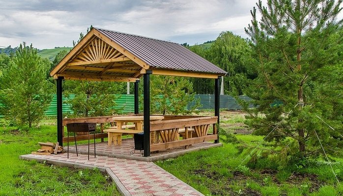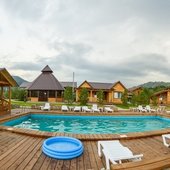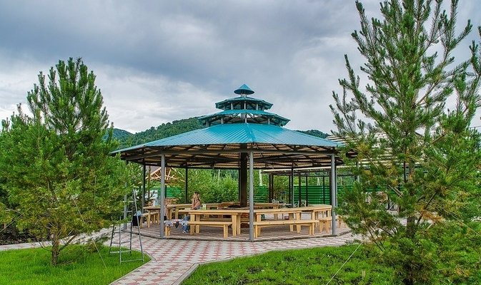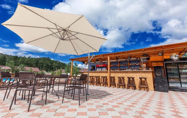 расположение от крупного центра; охрана; территория комплекса; чистота и порядок; сервис; номера: уличные беседки; наличие бассейнов; бани; велосипеды и самокаты напрокат; шведский стол с утра