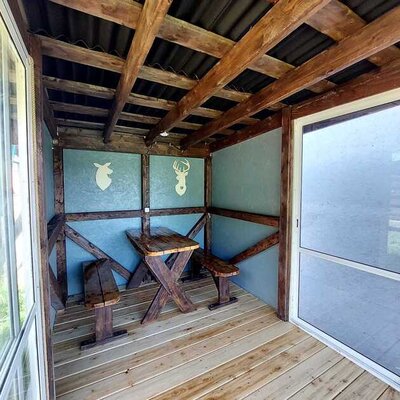 Уютная деревянная баня с традиционной парной, свежими вениками и просторной зоной отдыха, где можно расслабиться за чашечкой душистого чая с медом. Баня рассчитана на компанию до пяти человек и доступна для посещения от двух часов.