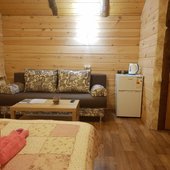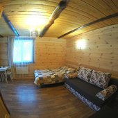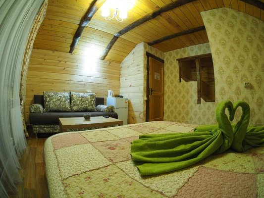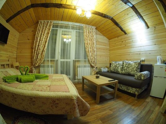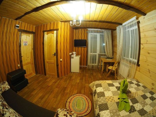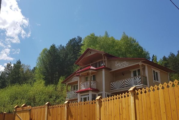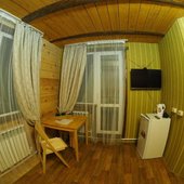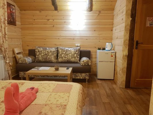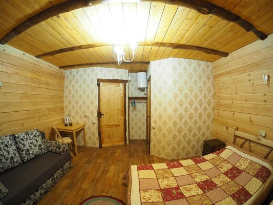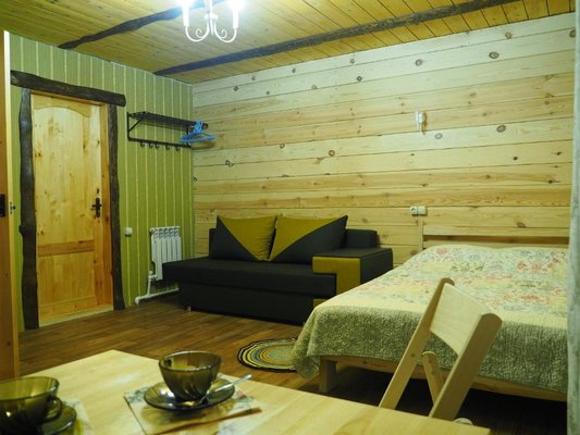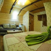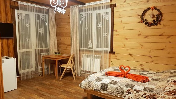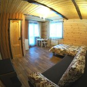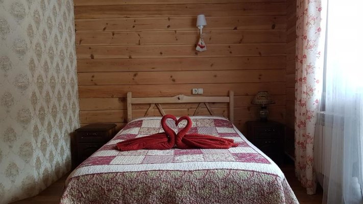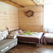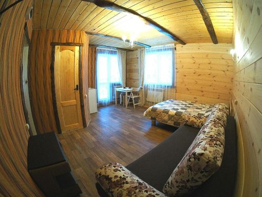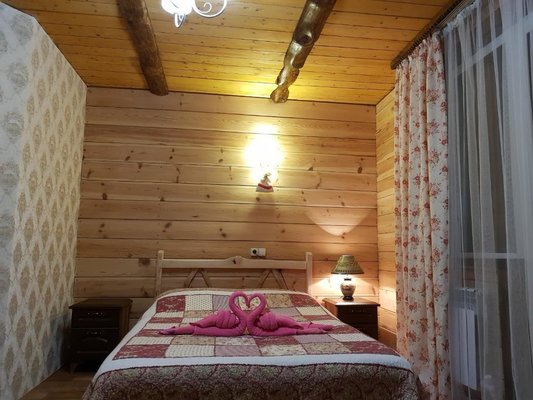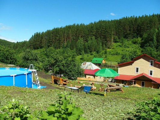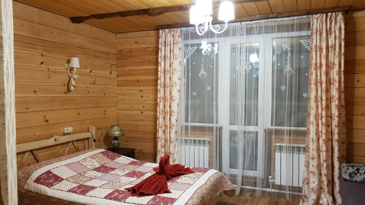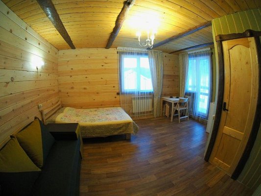Для гостей 6 комфортабельных ЭКО номеров класса люкс, банкетный зал, кухня-столовая, мангальная зона, стоянка на 8 машин. В летнее время к услугам гостей территория в 20 соток для палаточного лагеря. В гостевом доме 6 двухместных номеров по 20 кв.м. с возможностью 2-3 дополнительных мест. Все комнаты оснащены санузлом,душевой, балконом, вид из окон на лес и горы.