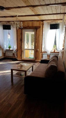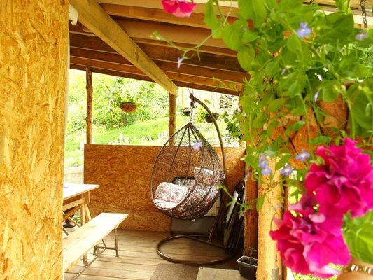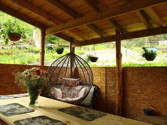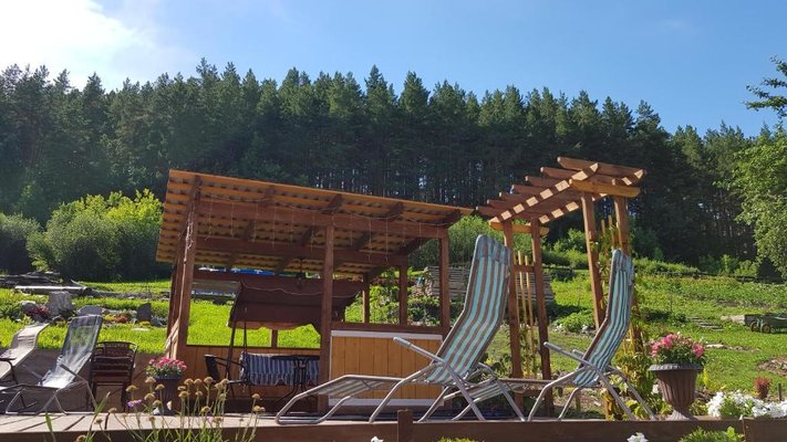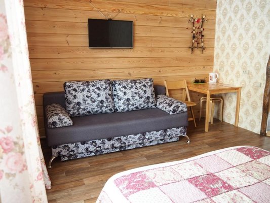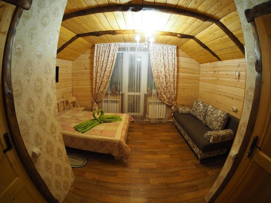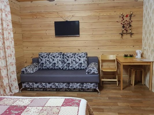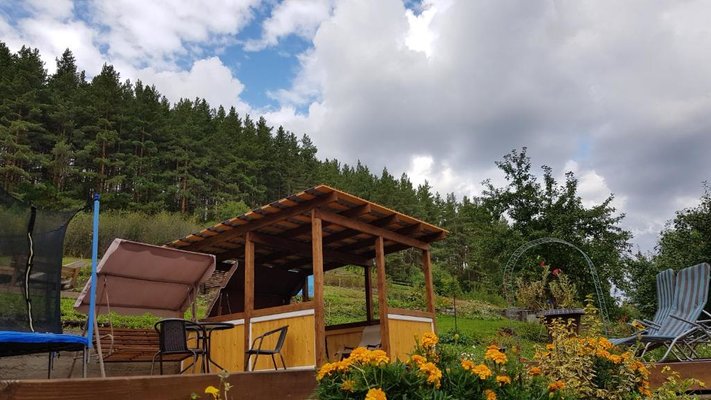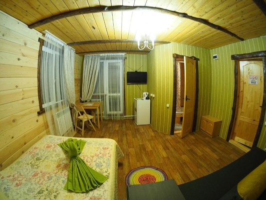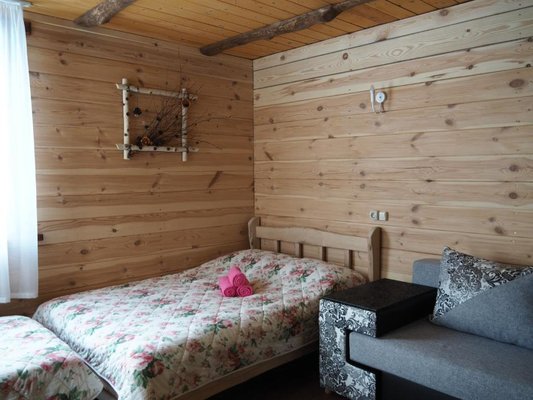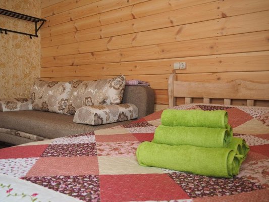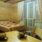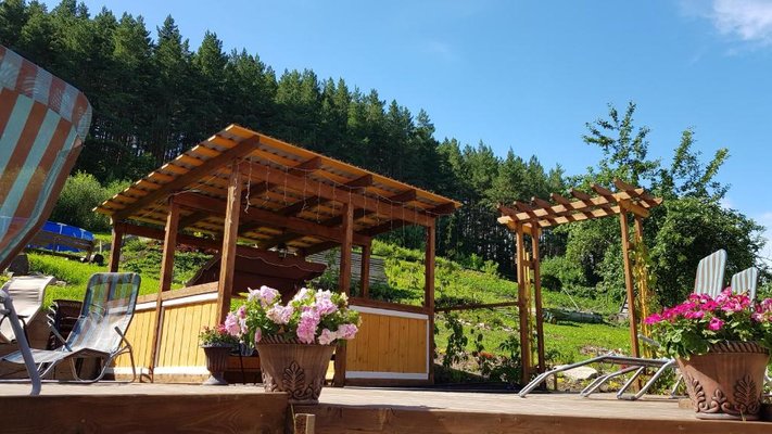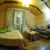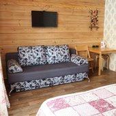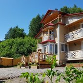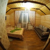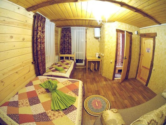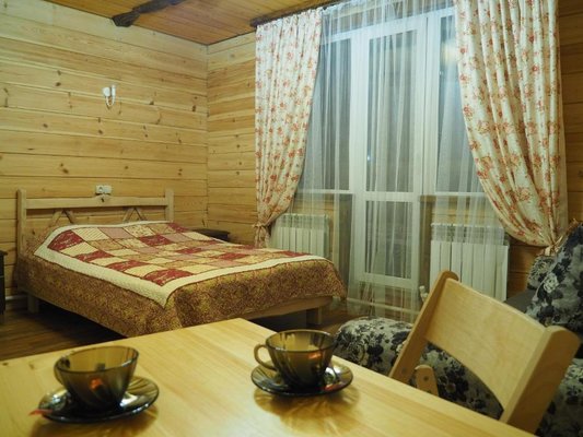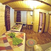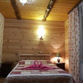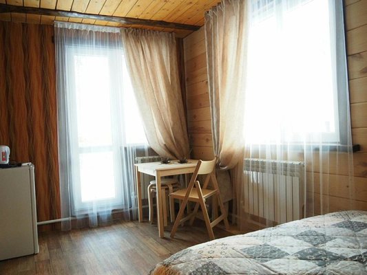 Для гостей 6 комфортабельных ЭКО номеров класса люкс, банкетный зал, кухня-столовая, мангальная зона, стоянка на 8 машин. В летнее время к услугам гостей территория в 20 соток для палаточного лагеря. В гостевом доме 6 двухместных номеров по 20 кв.м. с возможностью 2-3 дополнительных мест. Все комнаты оснащены санузлом,душевой, балконом, вид из окон на лес и горы.