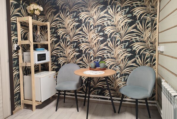Комплекс находится на второй береговой линии от озера, предлагая размещение как в уютных номерах гостевого корпуса, так и в комфортабельных отдельно стоящих домиках. Каждый номер оборудован собственным санузлом с душем, феном, телевизором и электрочайником; гостям предоставляются наборы косметических принадлежностей. Домики дополнительно оснащены функциональным кухонным уголком с электроплиткой.