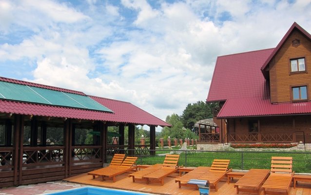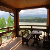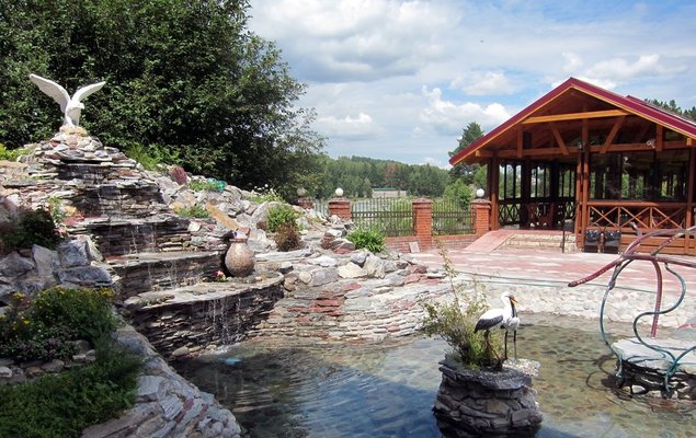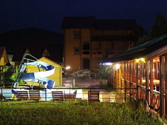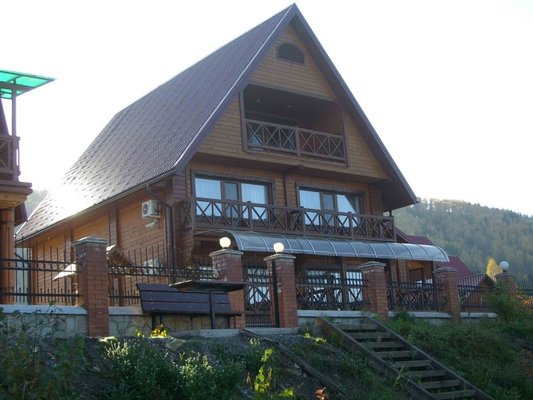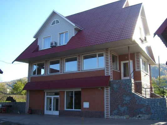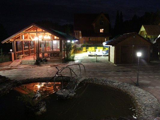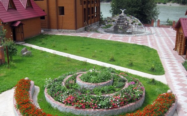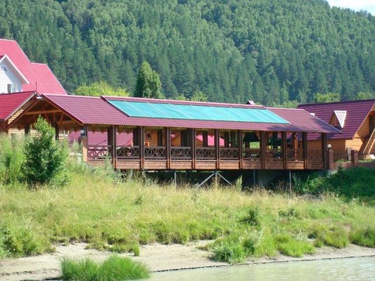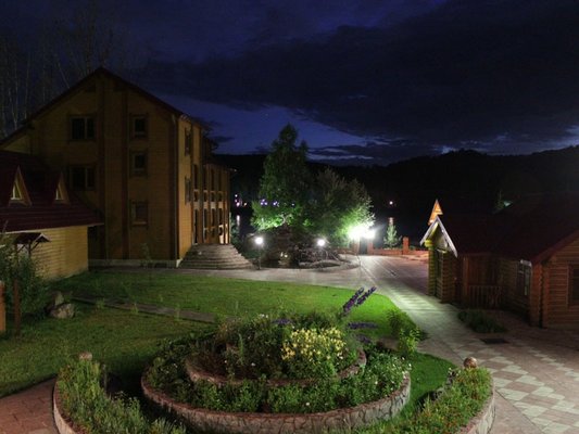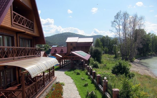 Территория ухоженна, благоустроена. Есть альпийская горка, живописным декоративным озером с водопадом и мостиком, лавочками и подсветками в темное время суток. Со всей территории открывается роскошный вид на Катунь.
