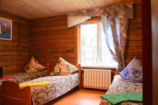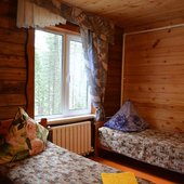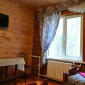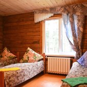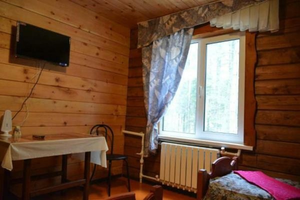 Номера выполнены в деревенском стиле, к заселению доступны двухместные и трехместные категории. В комнате есть комфортные спальные места, рабочий стол, телевизор. Ванная комната общая для всех отдыхающих.