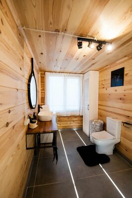 Полностью оборудованная кухня позволяет готовить самостоятельно, а ванная комната укомплектована всем необходимым, включая халаты и тапочки. Для удобства гостей также предусмотрены стиральная машина, утюг и гладильная доска.
