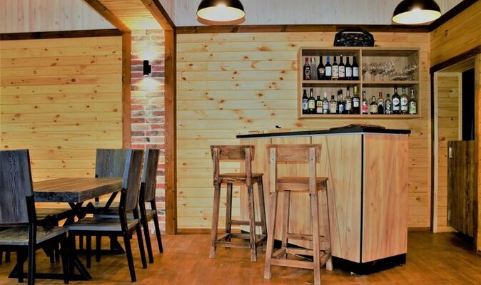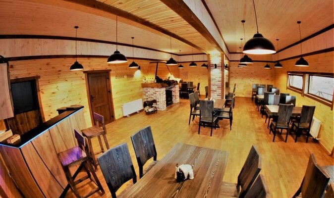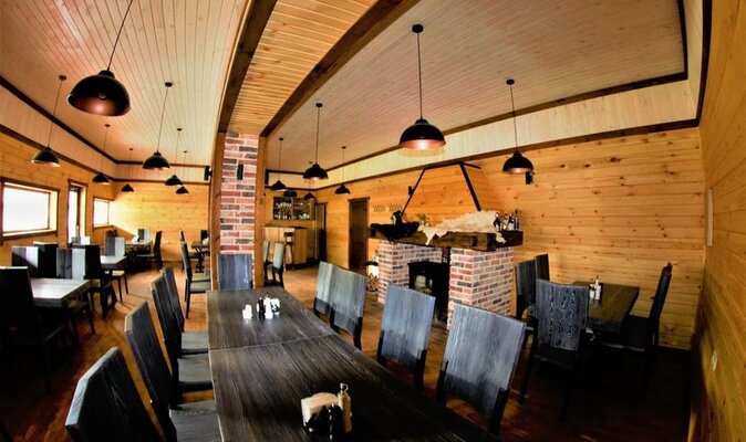 На территории комплекса расположен ресторан, предлагающий блюда русской кухни и готовые на огне мясные деликатесы. В ресторане используются местные продукты и ягоды для подготовки блюд. Также гости могут насладиться разнообразными дегустациями.