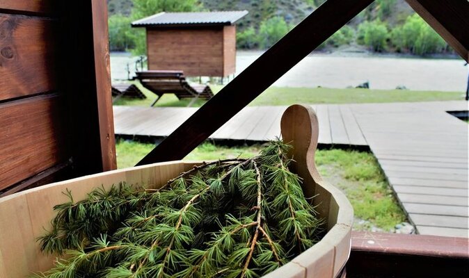 Банный комплекс комплектуется парными банями, беседкой, купелью, баней с бочкой и сеновым домиком. Гости могут заказать услуги парильщика и массажиста, а также посетить открытый бассейн.