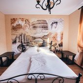 В трехэтажном гостевом доме «Кругосвет» расположено 12 комфортабельных номеров с отдельным санузлом и душем, кабельным телевидением и бесплатным интернетом. Вы можете побывать в Париже, Италии, Китае, Индии и еще 8 величайших городах и странах мира, не покидая пределов дома. Каждый номер комплекса выполнен в соответствии с отличительными особенностями и архитектурой этих мегаполисов.