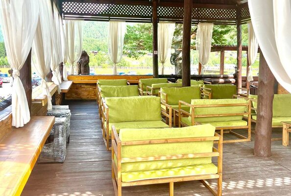 Семейное кафе быстрого питания, предлагающее вкусные блюда из местных продуктов, работает до 20:00. Большая зона барбекю с мангалом и камином для приятного времяпрепровождения на свежем воздухе. Банкетный шатер «Атмосфера» площадью 150 кв.м. вмещает до 45-60 гостей, идеально подходит для проведения торжественных мероприятий и деловых встреч. Так же имеется детская площадка для юных гостей. Рядом с отелем есть аттракционы, катапульта, тарзанки и другие развлечения.