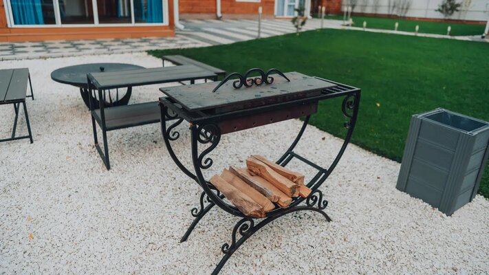 Территория базы — это гармоничное сочетание уюта и функциональности. Благоустроенный ландшафт с обилием ярких цветов, раскидистых деревьев и зеленых газонов располагает к неспешным прогулкам по извилистым пешеходным дорожкам. Для приятных вечеров оборудованы комфортабельные мангальные зоны и атмосферное костровище, создающее особую магию в темное время суток.