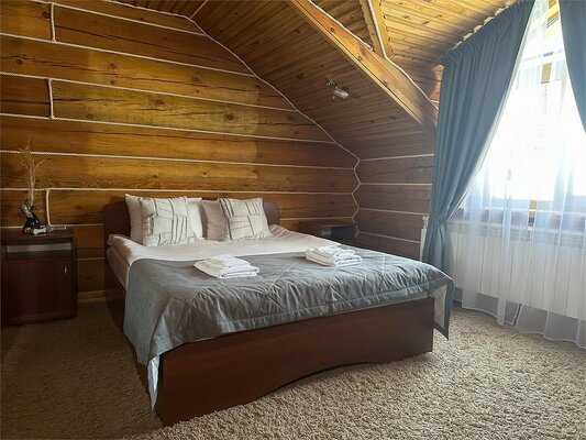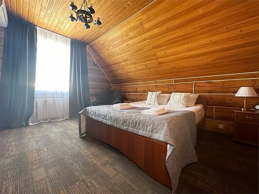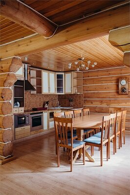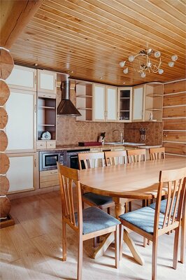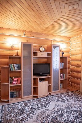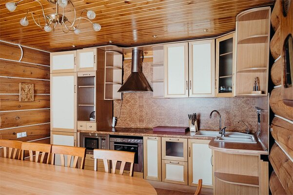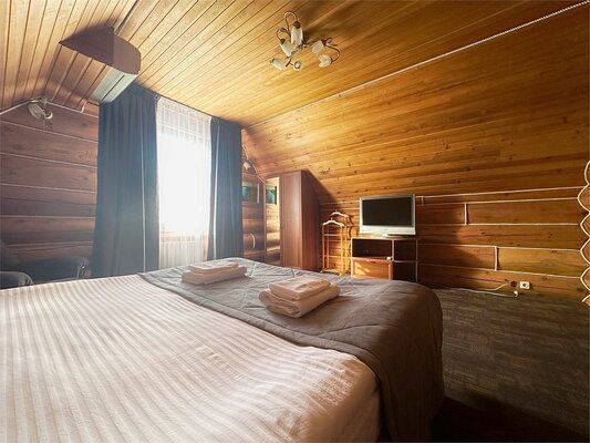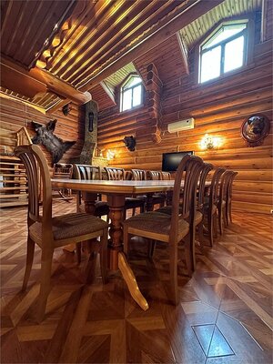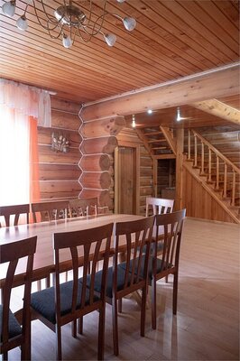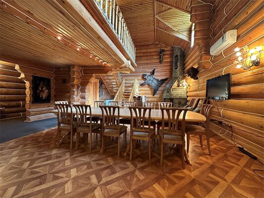 Большая двухэтажная баня, рассчитана на компанию от 8 до 12 человек. Большая парная, 2 душевые кабины, огромная зона отдыха с мебелью из ротанга, балконом и небольшой кухней.