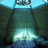 Идеальное место для отдыха, как с семьей, так и с большой компанией. Уникальную атмосферу создает запах дерева и шестиугольная форма помещения. В центре аила находится круглый стол, который символизирует единство и понимание. Днем вы можете насладиться яркими лучами солнца, а ночью мерцанием звезд благодаря уникальному дизайну аила.