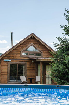 На территории шале «Рыжий кот», где находится Дом на двоих, расположена также и традиционная русская баня из рубленного кедра, топимая дровами. В ней предусмотрена уютная парная с вениками, просторная зона отдыха на восемь человек, а также уличный бассейн и холодная купель.