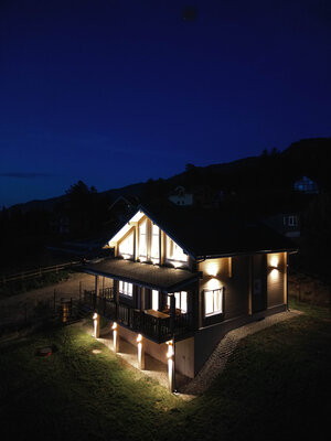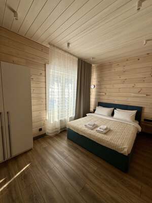 Дом рассчитан на комфортное проживание до 12 человек. Он находится на закрытой территории и оснащен всем необходимым для уютного отдыха. В вашем распоряжении 4 просторные спальни с большими окнами, современная кухня с обеденной зоной и всей техникой, 3 санузла с душевыми кабинами и ванной с панорамным видом, а также просторная терраса с завораживающим видом на горы.