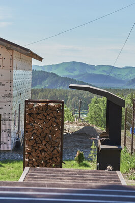 Баня на дровах с жаркой парной, построенная из рубленного кедра.